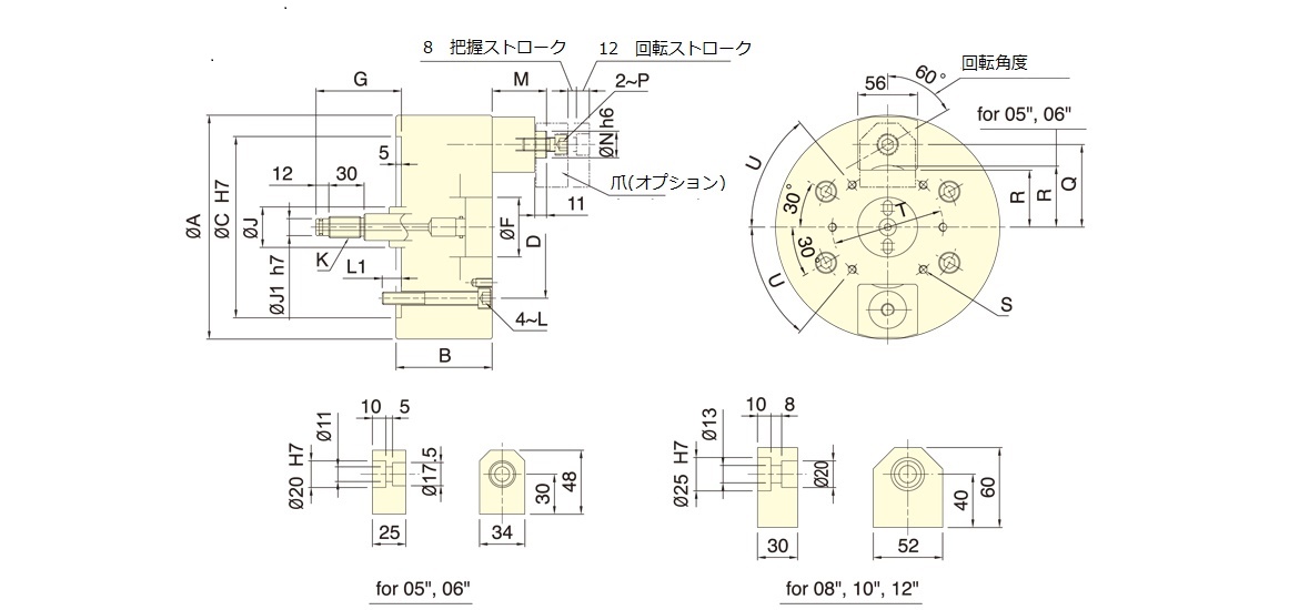 | 品番 | A | B | C | D | F | G max. | G min. | J | J1 | K | L | L1 | M max. | M min. | N | P | Q | R | S | T | U |