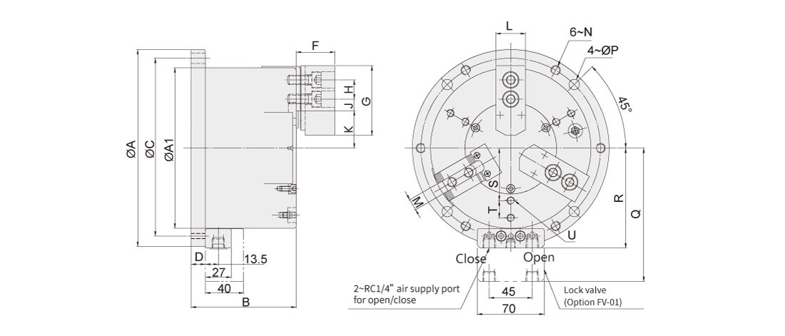 | Model | A(h7) | A1 | B | C | D | F | G | H | J max. | J min. | K max. | K min. | L | M | N | P | Q | R | S | T |
