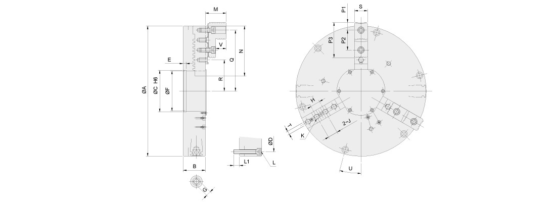 | Model | A | B | C(H6) | D | E | F | G | H | J(H7) | K | L | L1 | M | N | P1 | P2 | P3 | Q max | Q min | R max | R min | S | T(h8) | U | V | Y |