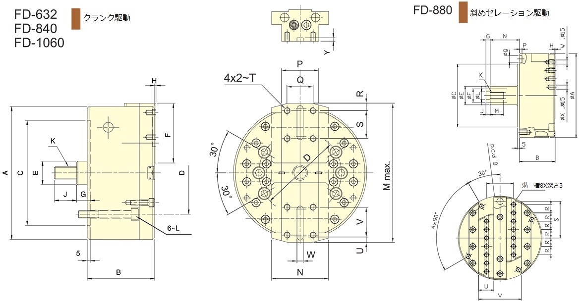| FD-840 | 6~M12x85 | 238 | 92 | 60 | 42 | 12 | 45 | M10x15 | 12 | 45 | 10 | 6 |